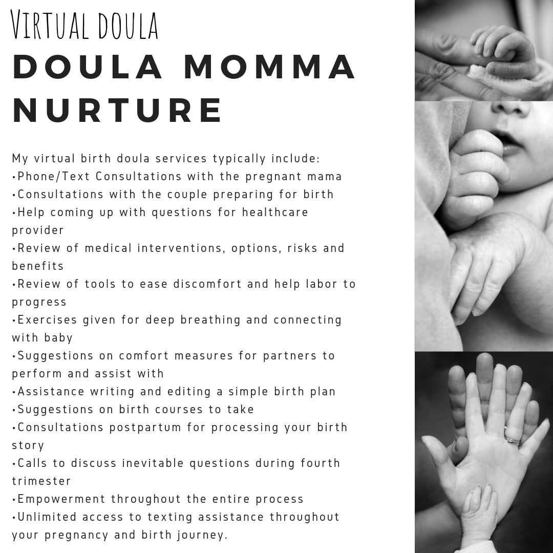 virtual doula services. I also offer virtual postpartum support to those that only need
